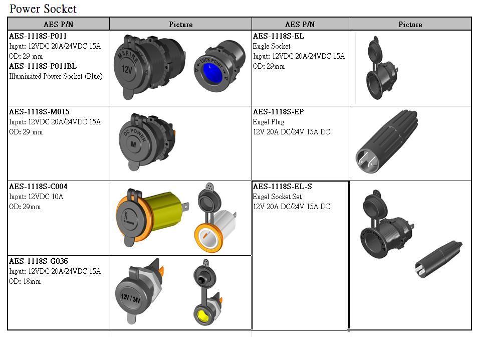 Socket and Accessories - Power Socket 1118S-P011/ P111/ P211/ P311/ PT11/ M015/ M115/ M215/ M315/ G0