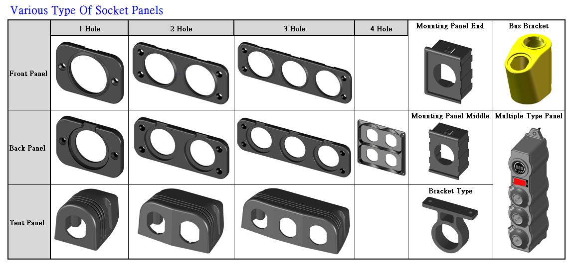 Water resistant socket, various choices including Power Socket, USB port socket, cigarette lighter socket and DC Voltmeter Socket. Either as a single one or in double panel set.